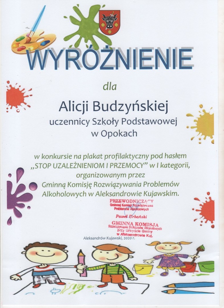 Wyniki gminnego konkursu plastycznego "Stop uzależnieniom i przemocy"