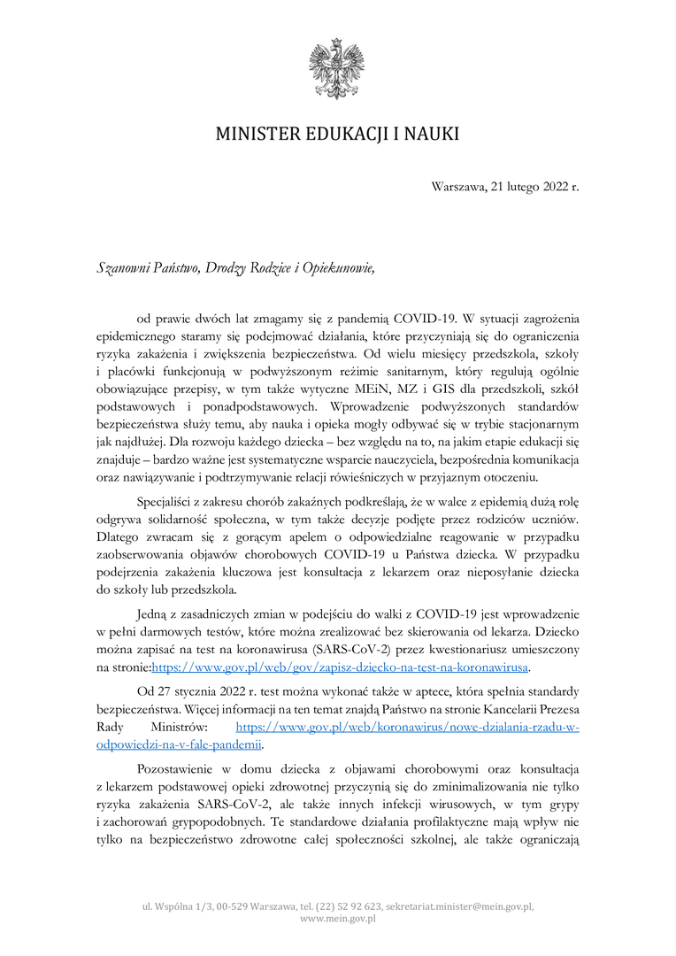 Strona główna Aktualności List do rodziców