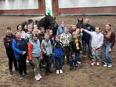 Dnia 04.10.2023r. uczniowie klas IV-VIII wraz z wychowawcami pojechali na wycieczkę integracyjną do „Rancza pod Olszyną” w Nowym Ciechocinku. Mimo chłodnej pogody, humory dopisywały. Uczniowie udali się na przejażdżkę po lesie tramwajem konnym oraz zwiedzili ranczo i poznali jego licznych czworonożnych mieszkańców. Nie zabrakło zabaw i konkurencji ruchowych, jak np. rzucanie podkową, czy wyścigi na hobby horsach. Uczniowie mieli także okazję zobaczyć jak wygląda świat z perspektywy końskiego grzbietu. Na koniec, przy dźwiękach muzyki, wszysycy zgromadzili się przy ognisku i wspólnie piekli kiełbaski. Ten czas, spędzony w otoczeniu natury, był żywą lekcją przyrody oraz okazją do lepszego poznania się i zacieśniania więzi.