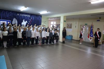 SZKOŁA DO HYMNU 8 listopada 2024 r. o godzinie 11:11 wspólnie zaśpiewaliśmy "Mazurka Dąbrowskiego". Uczciliśmy 106 rocznicę odzyskania przez Polskę niepodległości. Zdjęcia Zobacz również #SprzątamyDlaPolski KONKURS PLASTYCZNY Eko Schronisko „Zielone Pole” SZKOŁA DO HYMNU Pasowanie na ucznia A letter from Hogwarts 12 listopada 2024 Aktualności Wydrukuj Udostępnij Wyświetlono: 134