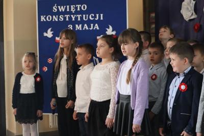 Dnia 29.04.25 r. wszyscy uczniowie oraz nauczyciele Naszej szkoły wzięli udział w uroczystym apelu z okazji Święta Konstytucji. Tego dnia uczniowie klasy I,II oraz III zaprezentowali montaż słowno -muzyczny. Podczas uroczystości nie zabrakło patriotycznych wierszy i utworów w wykonaniu najmłodszych dzieci. Święto Konstytucji jest jednym z najważniejszych dla wszystkich Polaków dni, dlatego tak ważne jest aby każdego roku upamiętniać to wydarzenie i pobudzać poczucie patriotyzmu już od najwcześniejszych lat.