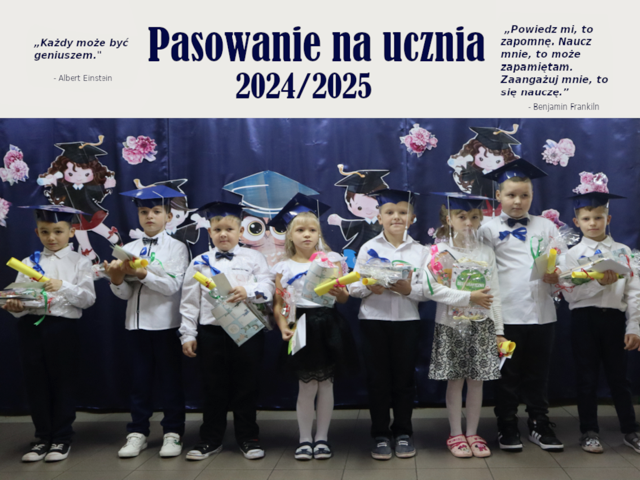 15 listopada 2024 Aktualności Pasowanie na ucznia 14.10.24 w naszej szkole odbyła się wyjątkowa akademia z okazji pasowania na ucznia. Ośmioro uczniów z klasy I zaprezentowało swoje umiejętności. Recytowali wierszyki oraz śpiewali piosenki niczym prawdziwy... Czytaj więcej