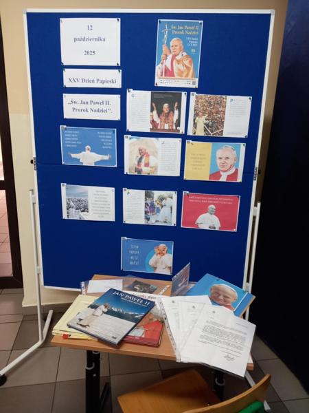 09 października 2025 Aktualności *Dzień Papieski w naszej szkole* Dzień Papieski jak co roku w naszej szkole był okazją do wspomnienia i uczczenia pamięci św. Jana Pawła II. Wystawa i gazetka przypomniała wszystkim jak wielkim człowiekiem, jak wielkim Polakiem był św.... Czytaj więcej